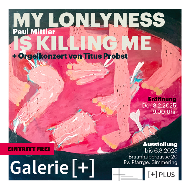 Die Bildwelt von Paul Mittler setzt sich zusammen aus den Bildern, die er selbst konsumiert und jenen, die seinen Wünschen und Ängsten entspringen. Es ist eine Flut an Bildern wie sie junge Menschen von TikTok oder Instagram kennen. Wie auf Social Media scheint sich auch in seinen Bildern alle 13 Sekunden das Thema zu ändern und doch ergibt sich irgendwie ein Ganzes. An uns vorbei blitzen Schnappschüsse von Rennautos, Blumenstöcken, Tatortfotos, Kreuzfahrtschiffen und Drohnen, die über den Himmel gleiten. Es ist eine Welt, umarmt von Punk-Romantik und vergeudeten Nächten in Billardlokalen und Bars, die am Ende über nichts anderes erzählt als über den großen Weltschmerz und den Wunsch nach Liebe. Schlussendlich lassen uns Mittlers Bilder aber nicht deprimiert und erschrocken zurück. Es ist der Humor und das Lachen über das, was uns überfordert und worüber man sonst nur weinen könnte. Es sind das Übertreiben und Sich-Lustig-Machen, ein gesunder infantiler poetischer Blick und die Freude an kleinen Dingen, die genauso in seinen Bildwelten zu finden sind und die wir auch in unseren Leben finden. Musikalisch begleitet wird der Abend durch ein Orgelkonzert des Wiener Musikers Titus Probst, der sonst mit Synthie-Pop-Balladen im Stil der 80er sein Publikum begeistert und zum Tanzen bringt.