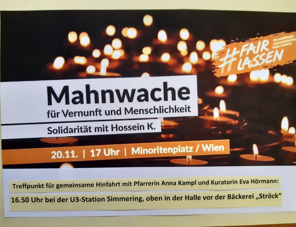 Mahnwache für Vernunft und Menschlichkeit, 20.11., 17 Uhr, Minoritenplatz