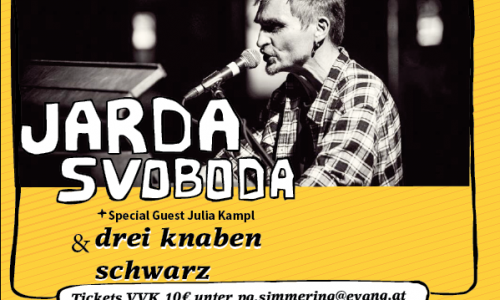 Addresse: GlaubenskircheBraunhubergasse 201110 WienDonnerstag, 4 Mai 2023 - 7:00nachmittagsKonzert Trabandita Jarda Svoboda & drei knaben schwarz und special Guest Julia Kampl